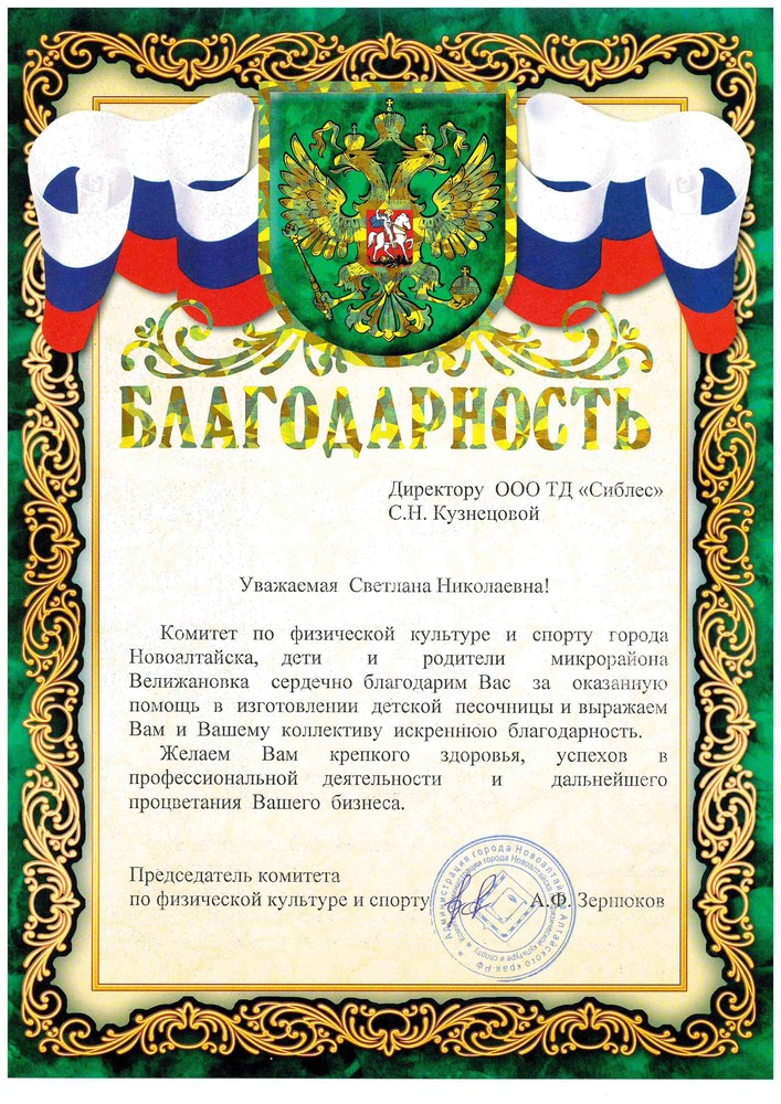 Благодарю компанию "Сибирский Лес" за воплощение нашей мечты.